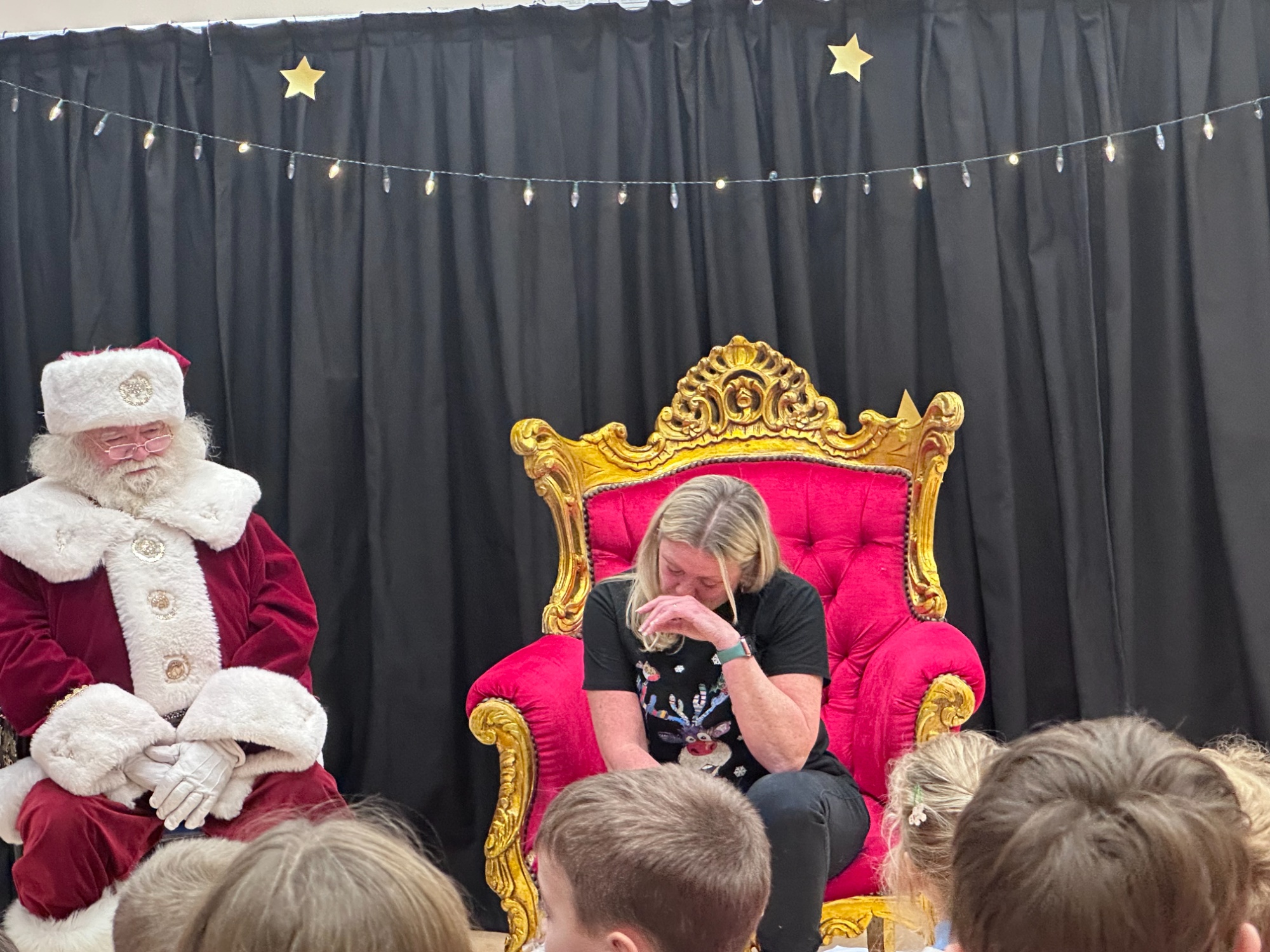 This was followed by a special assembly to say goodbye to Mrs Woodward, who leaves us at the end of term after 17 years of dedicated service. During her time at Llangan, Mrs Woodward has brought laughter, kindness and energy to our school, teaching PE to all pupils, leading netball club and supporting trips and residentials. Her fun-loving spirit and genuine care for the children will be greatly missed. She is excited to begin a new chapter but is already planning to visit us again in January. Year 6 shared a poem, we sang the school song, and she was presented with cards and gifts, with Father Christmas sitting proudly alongside her throughout the assembly.