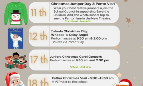 We’ve also indicated the days when children may wear Christmas jumpers — on all other days, please continue with normal school uniform.