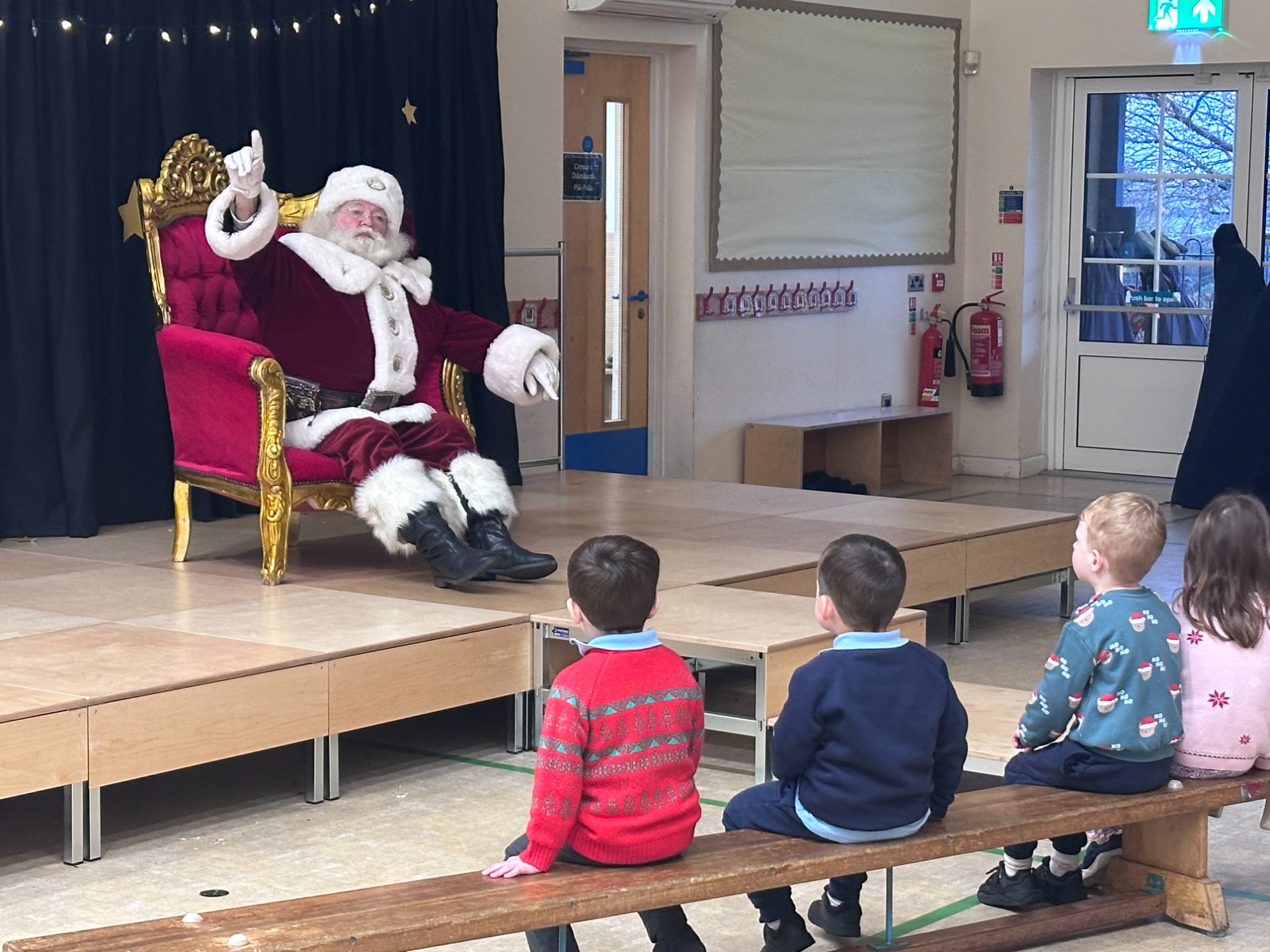 On Thursday, we were delighted to welcome a very special visitor as Father Christmas came to Llangan. Classes met him in the hall, sang songs, shared stories and received gifts kindly provided by the PTA, although Father Christmas reminded us that he does not usually give out presents until Christmas Eve.
