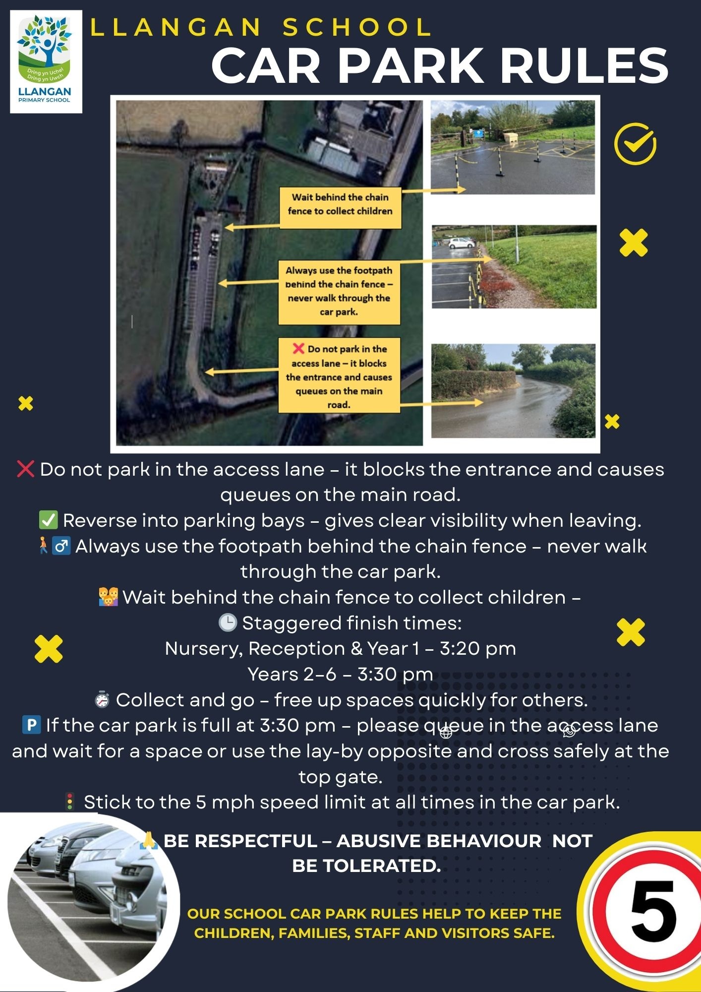 Thank you for helping us keep Llangan a safe, respectful and calm community for our children, families and staff. Your cooperation genuinely makes a difference.