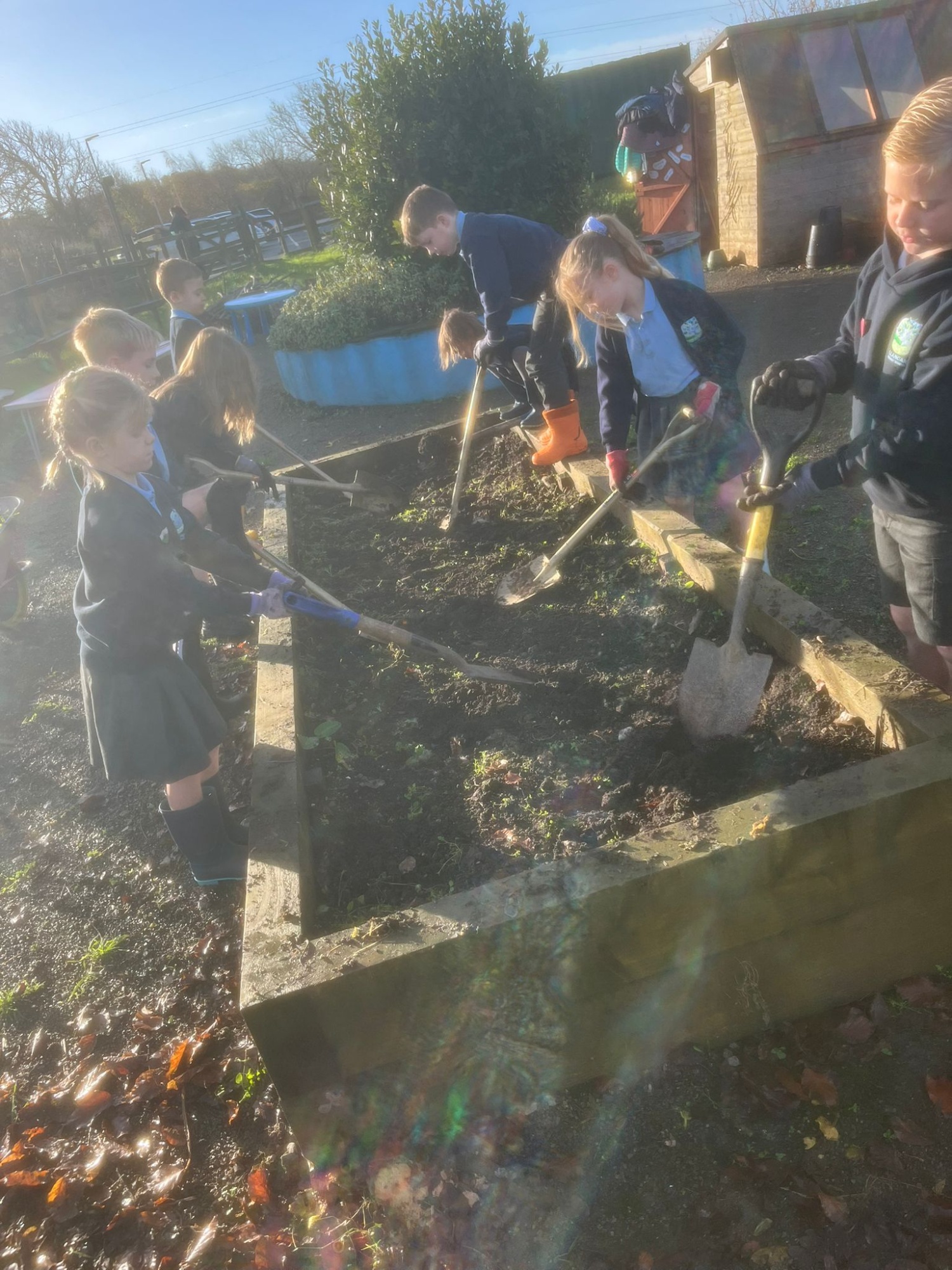 🌱 Years 2/3 rolled up their sleeves to clear the autumn beds, compost the old growth and prep the soil ready for winter planting. They then put their fine-motor skills to the test by creating beautiful willow frames — amazing teamwork and focus!