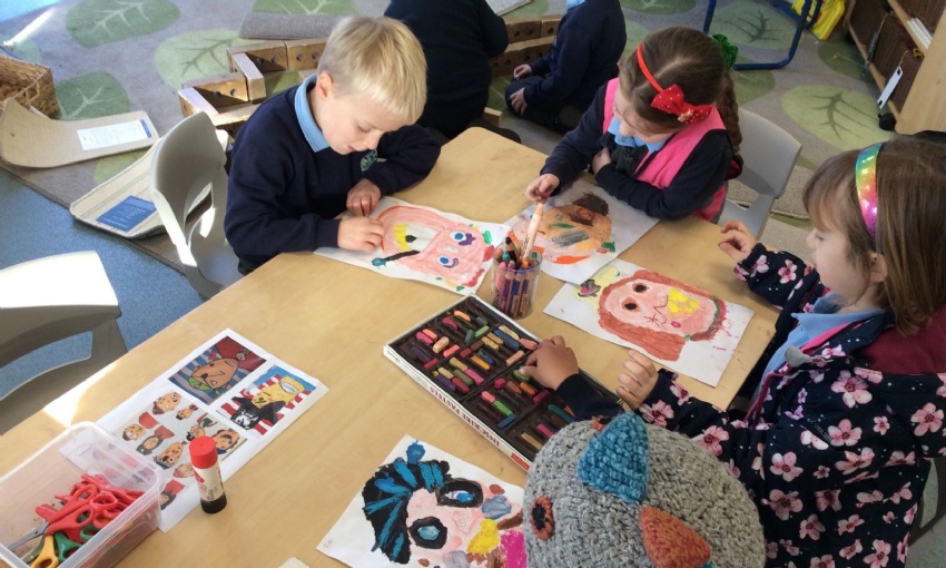 In the small world area, inspired by Louis Armstrong’s 'What a Wonderful World', the children built their own “wonderful worlds,” imagining places filled with kindness, care and friendship. In the creative area, they painted portraits of a friend and added a kind message to go with it.