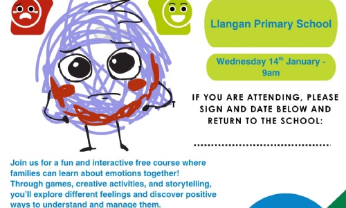 The course will take place at Llangan Primary School on Wednesday 14th January at 9.00am. Families who wish to attend are asked to sign and return the slip to school.