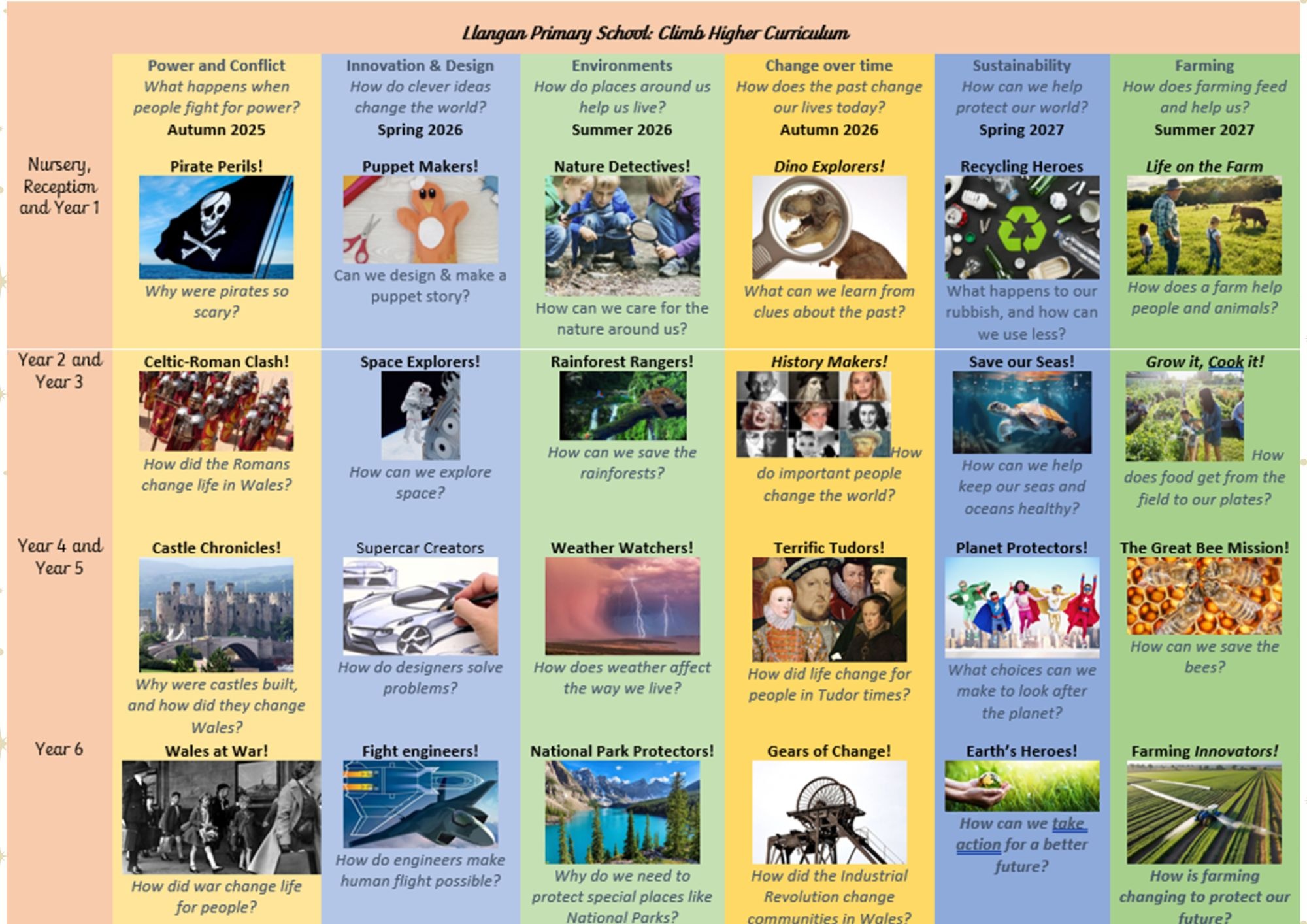 At Llangan, we are proud of a curriculum that is ambitious, inclusive and rooted in our cynefin, helping every child not just to climb high — but to climb higher.